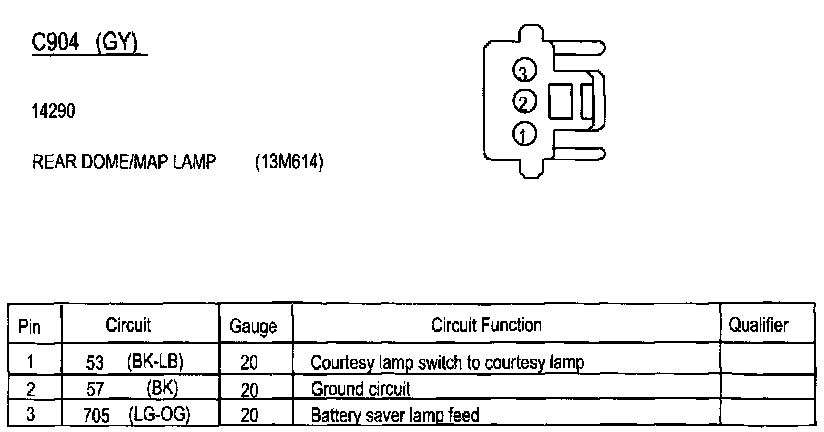 Connector Views show the views of the pins and/or cavities of all connectors. The pin and cavity sides are shown separately as if the connector were disconnected. The color of the connector housing is indicated next to the connector number when available. The harness causal number is located above the connector view and below the connector number. The circuit function charts are located below each connector.