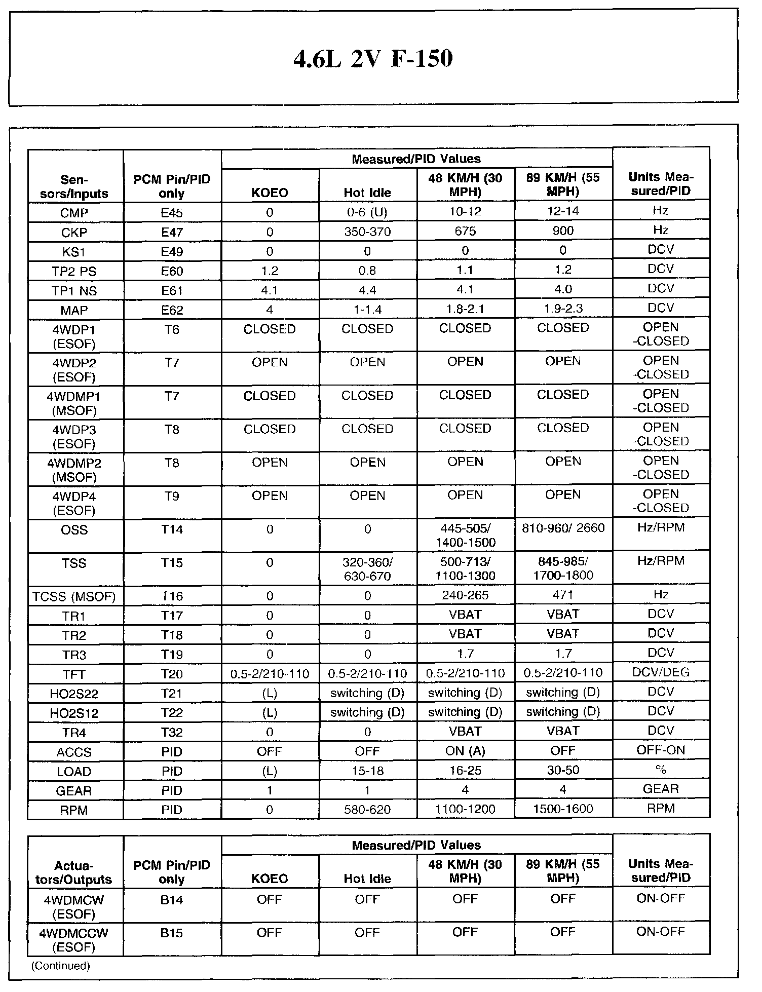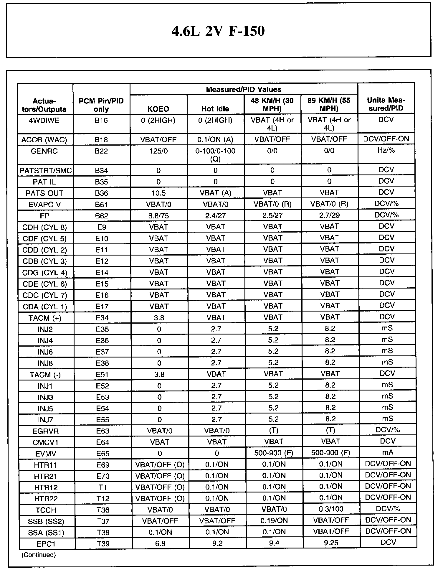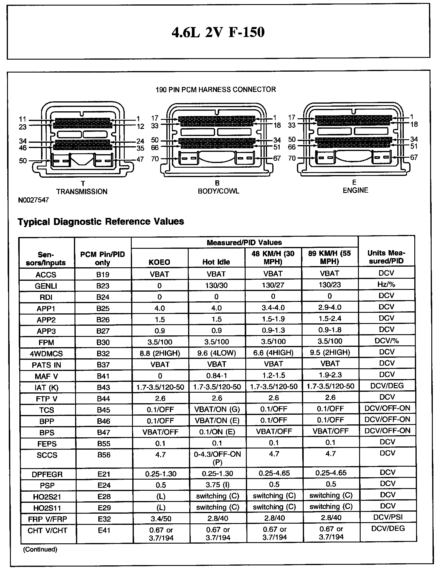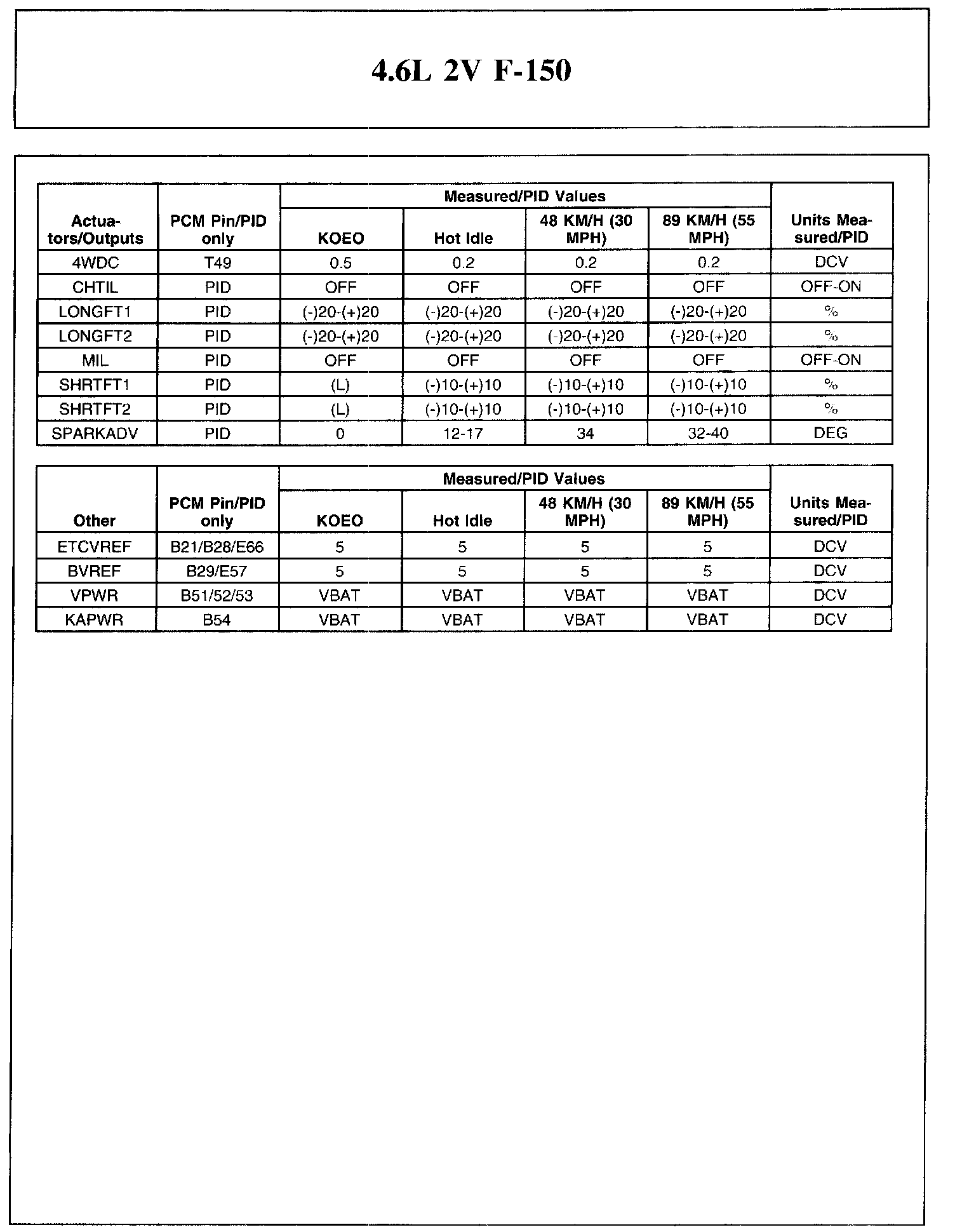 The Typical Diagnostic Reference Value Charts do not display fault parameter identifications (PIDs). These are PIDs which indicate a hard fault with the circuit. They display a value of YES or NO and are PIDs ending with the letter F.