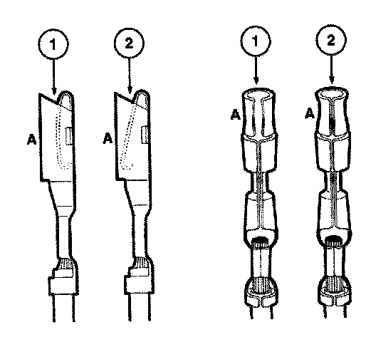 Any probe entering the terminal may enlarge the contact spring opening creating an intermittent signal. Insert the correct mating terminal (Location A) from the service kit and feel for a loose fit.