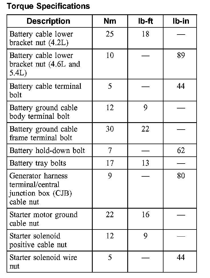 Torque Specifications: