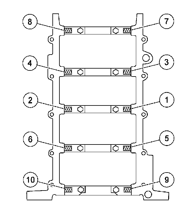 Crankshaft main bearing bolts (side bolts) 21 Nm (15 ft. lbs.)