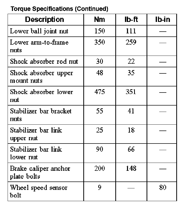 Torque Specifications (Part 1):