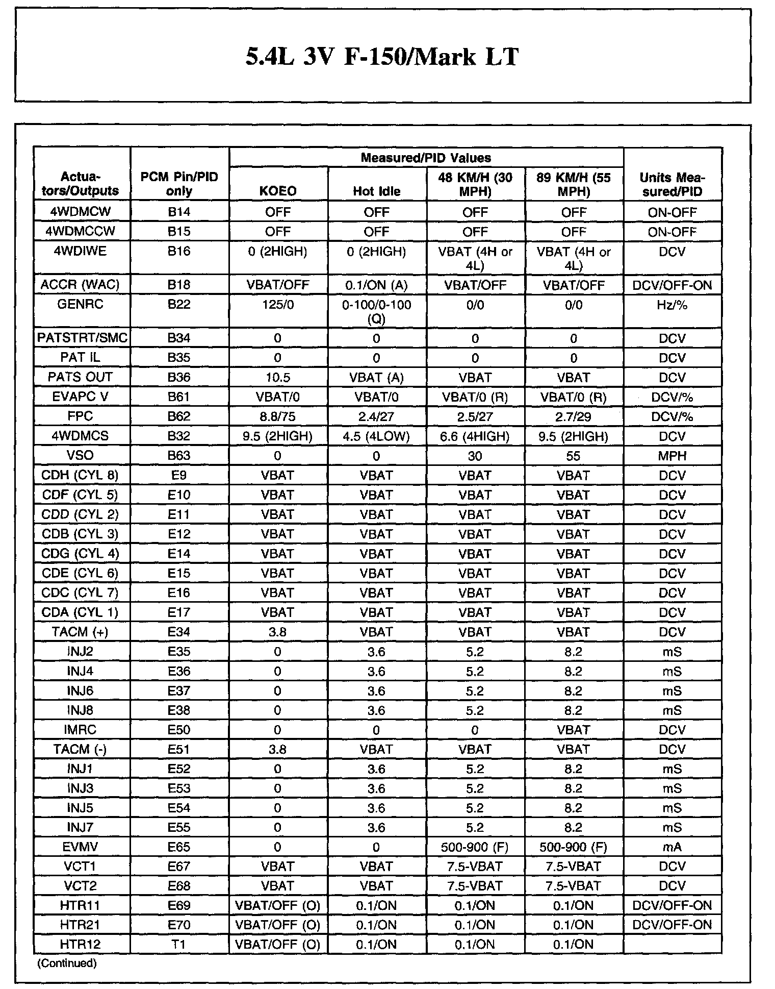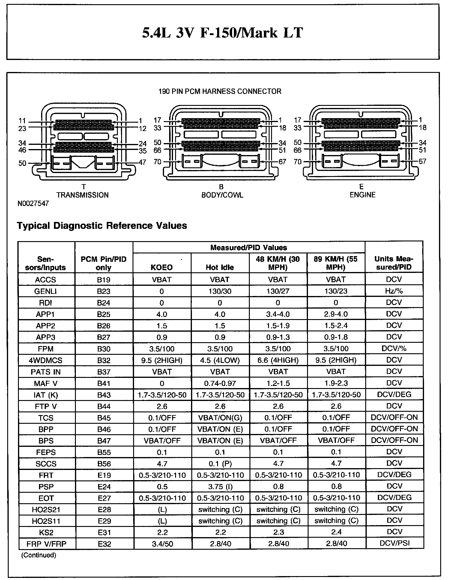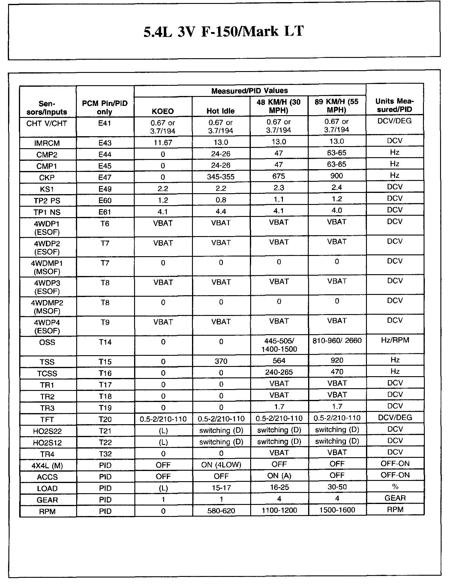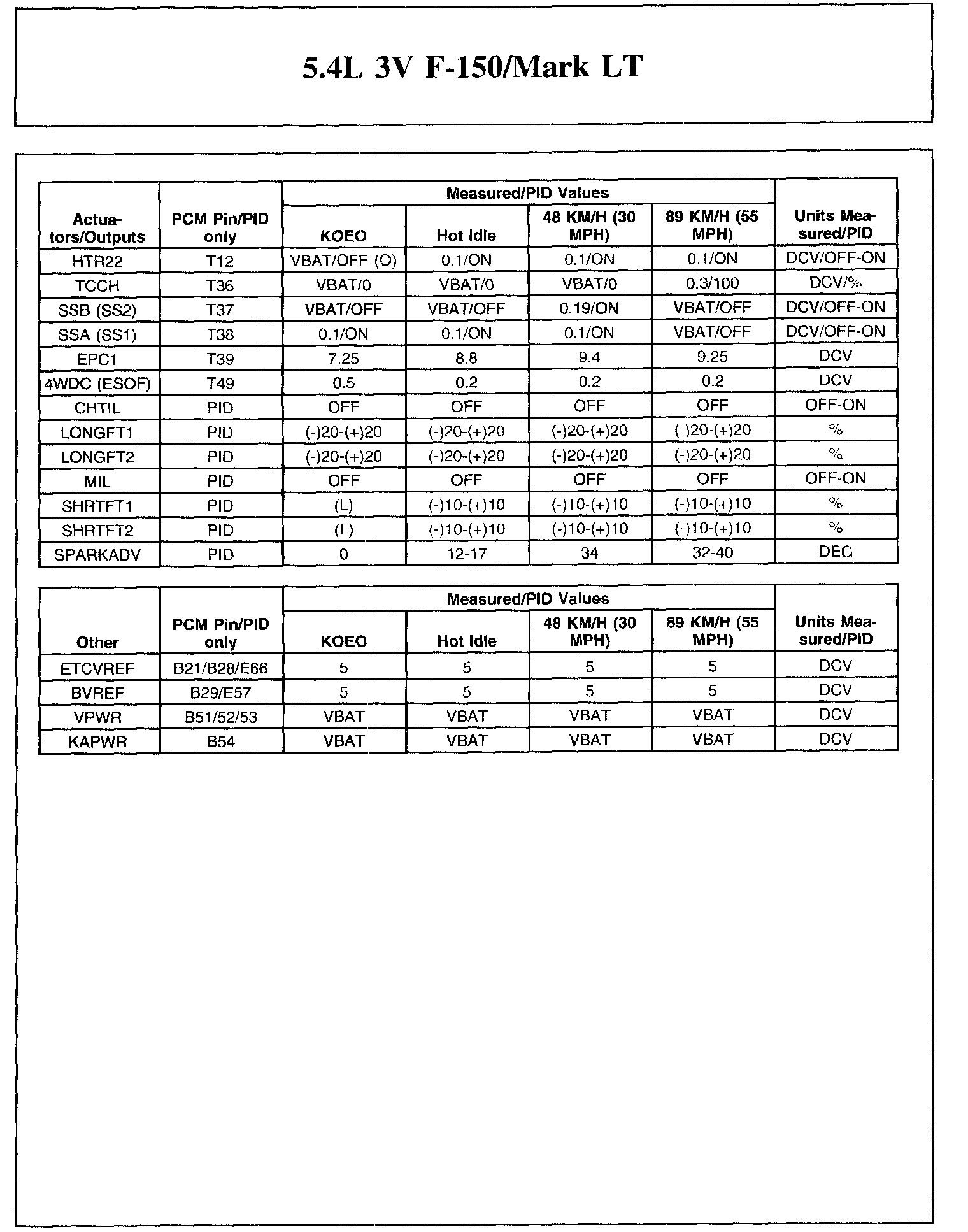 The Typical Diagnostic Reference Value Charts do not display fault parameter identifications (PIDs). These are PIDs which indicate a hard fault with the circuit. They display a value of YES or NO and are PIDs ending with the letter F.