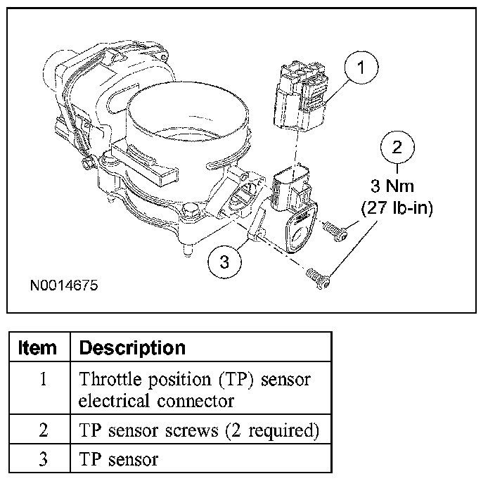 NOTE: When installing the new TP sensor, make sure that the radial locator tab on the TP sensor is aligned with the radial locator hole on the throttle body (TB).
