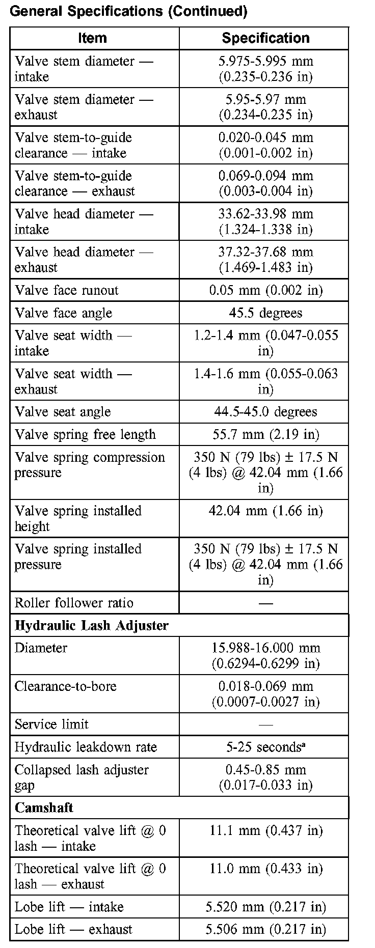 General Specifications