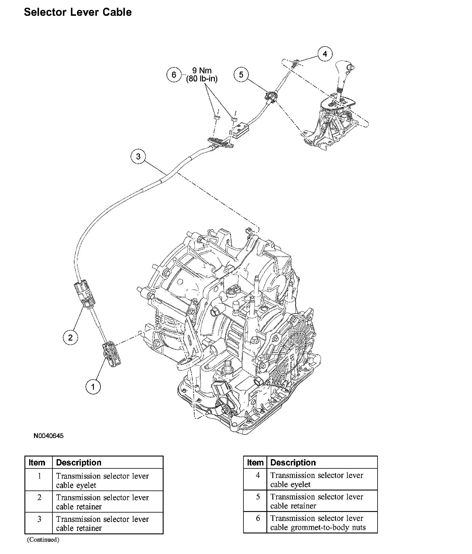 1. Attach the draw cord to the transaxle end of the selector lever cable.