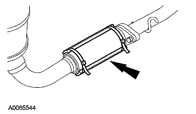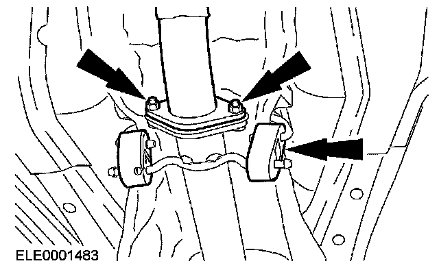 7. Disconnect the center exhaust hanger and support the exhaust with wire.