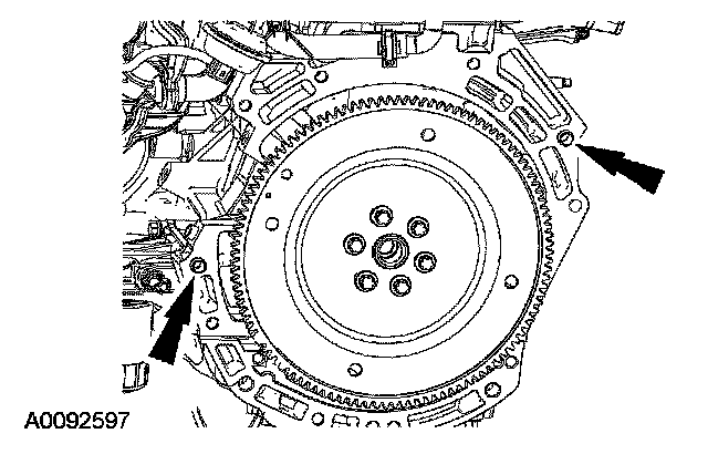 9. NOTE: If new parts are not being used, be sure to align the marks on the flexplate and the stud made during engine removal.