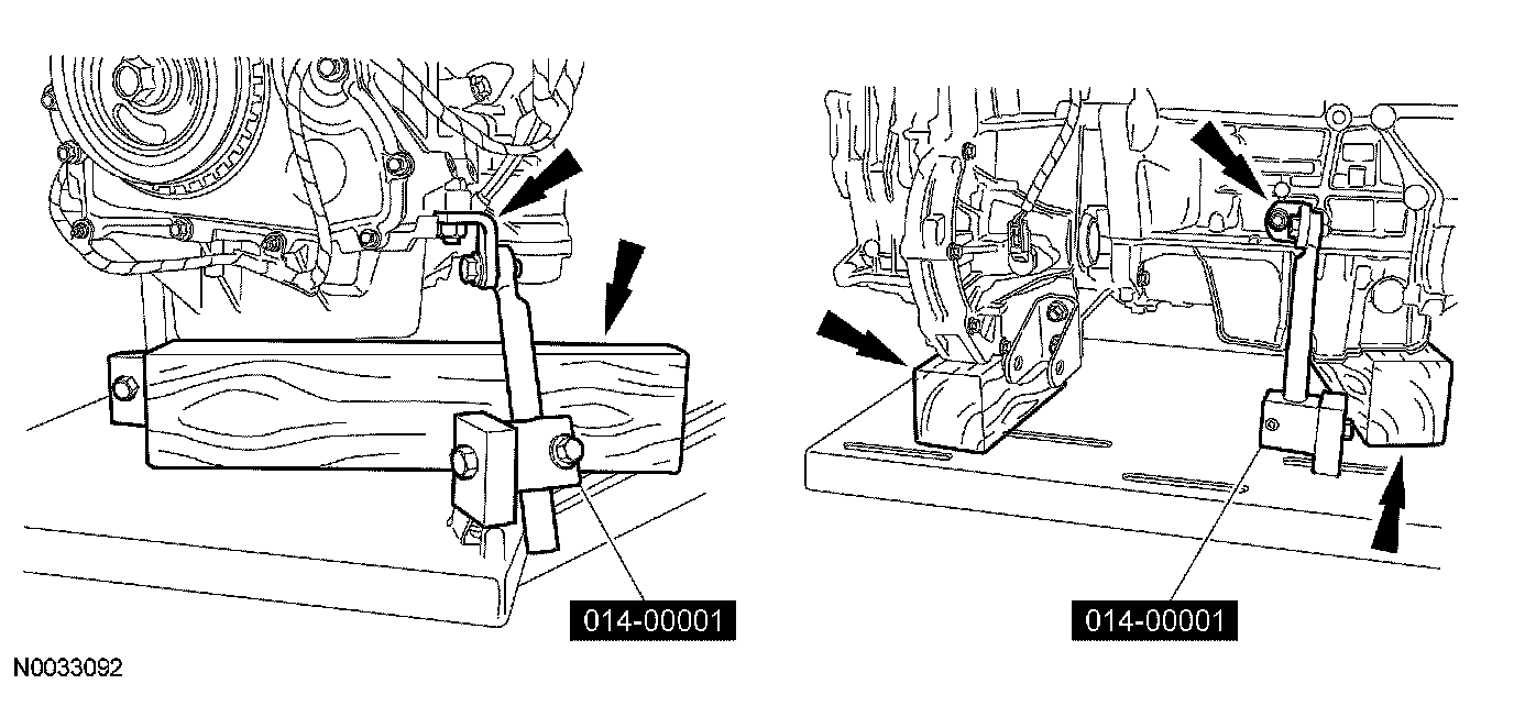 5. Using the special tools, secure the engine and transaxle assembly to the lift table.