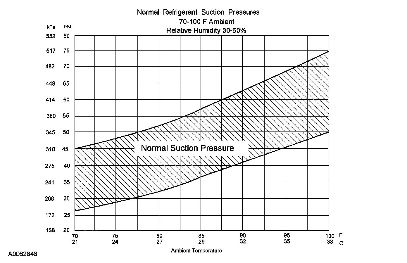 10. Determine if the suction pressure falls between normal operating limits using the Normal Refrigerant Suction Pressures chart.