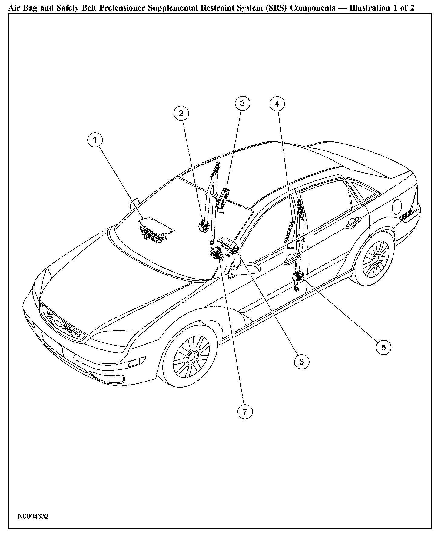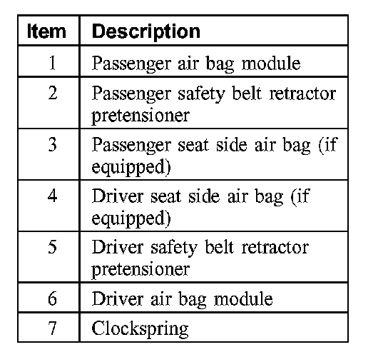 Air Bag And Safety Belt Pretensioner Supplemental Restraint System (SRS) Components - Illustration 1 Of 2 (Part 1):