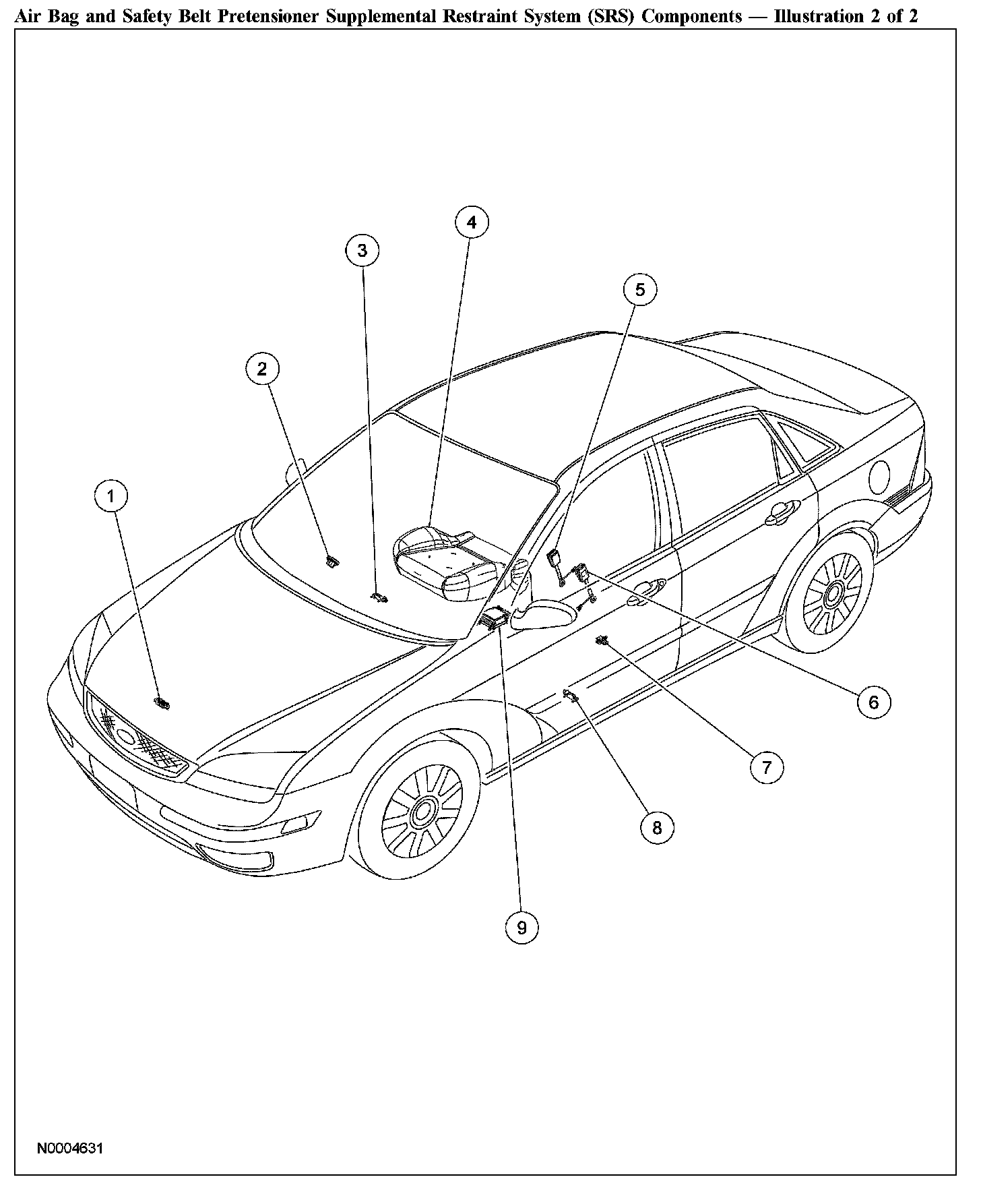Air Bag And Safety Belt Pretensioner Supplemental Restraint System (SRS) Components - Illustration 2 Of 2 (Part 2):