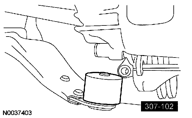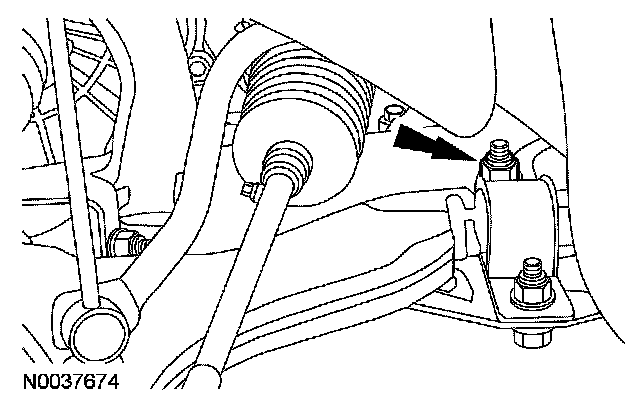 4. CAUTION: Tighten the lower arm inboard bracket nut and bolt with the suspension at curb height.