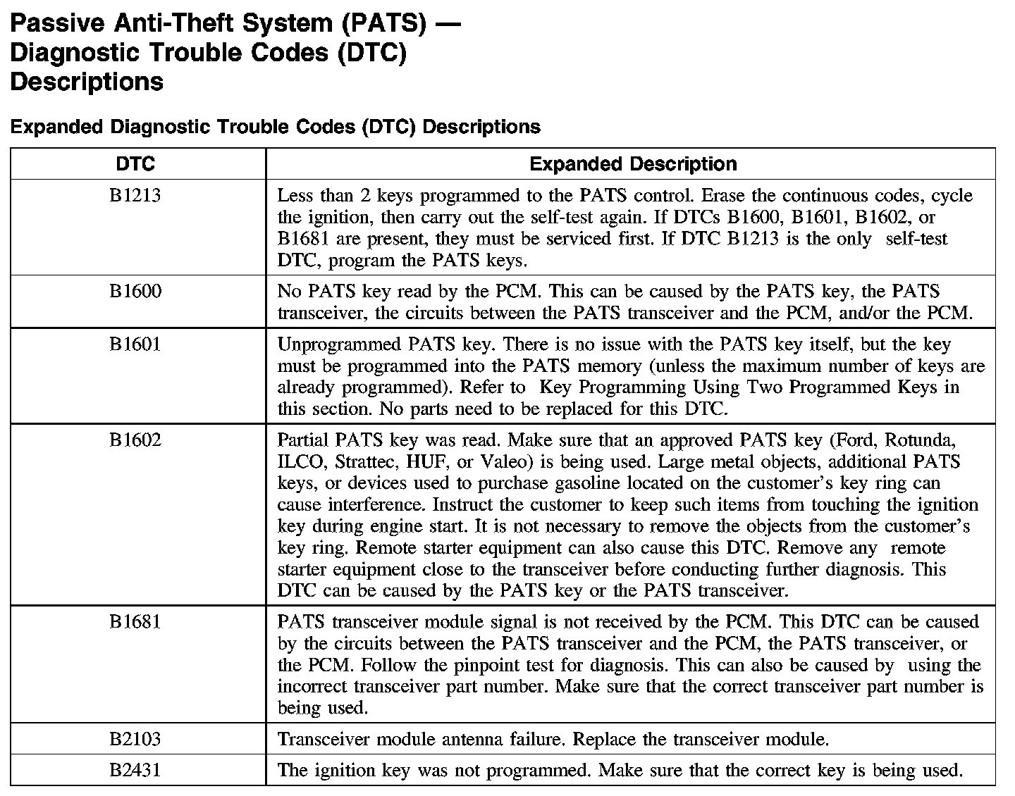 Diagnostic Trouble Code Descriptions