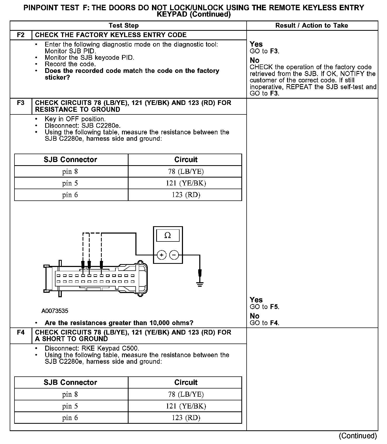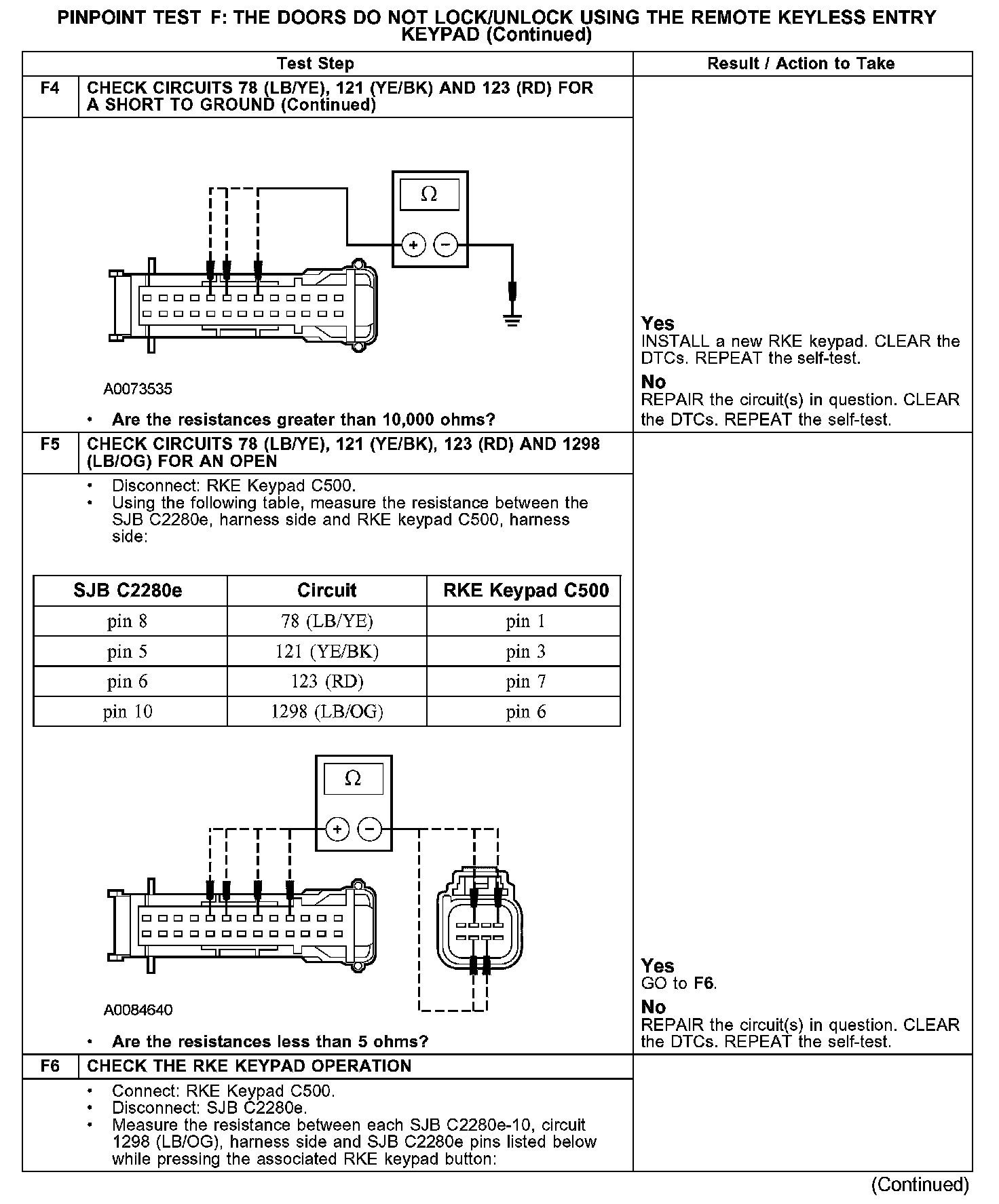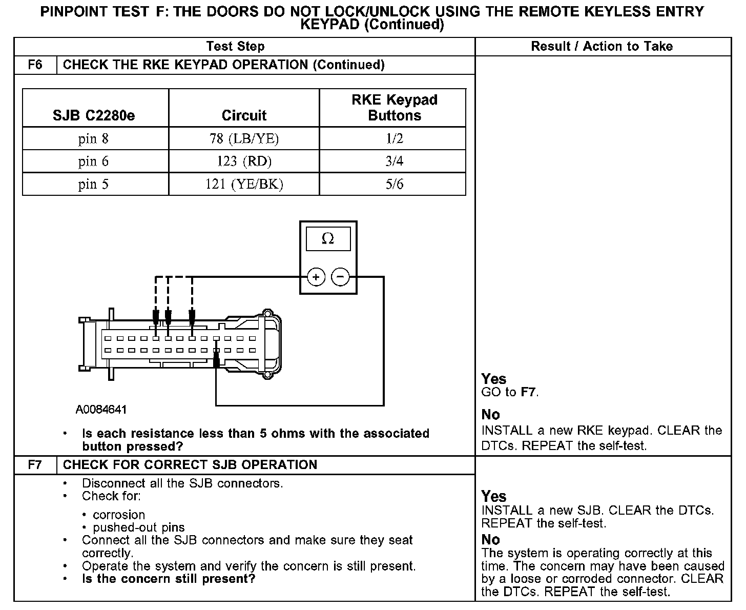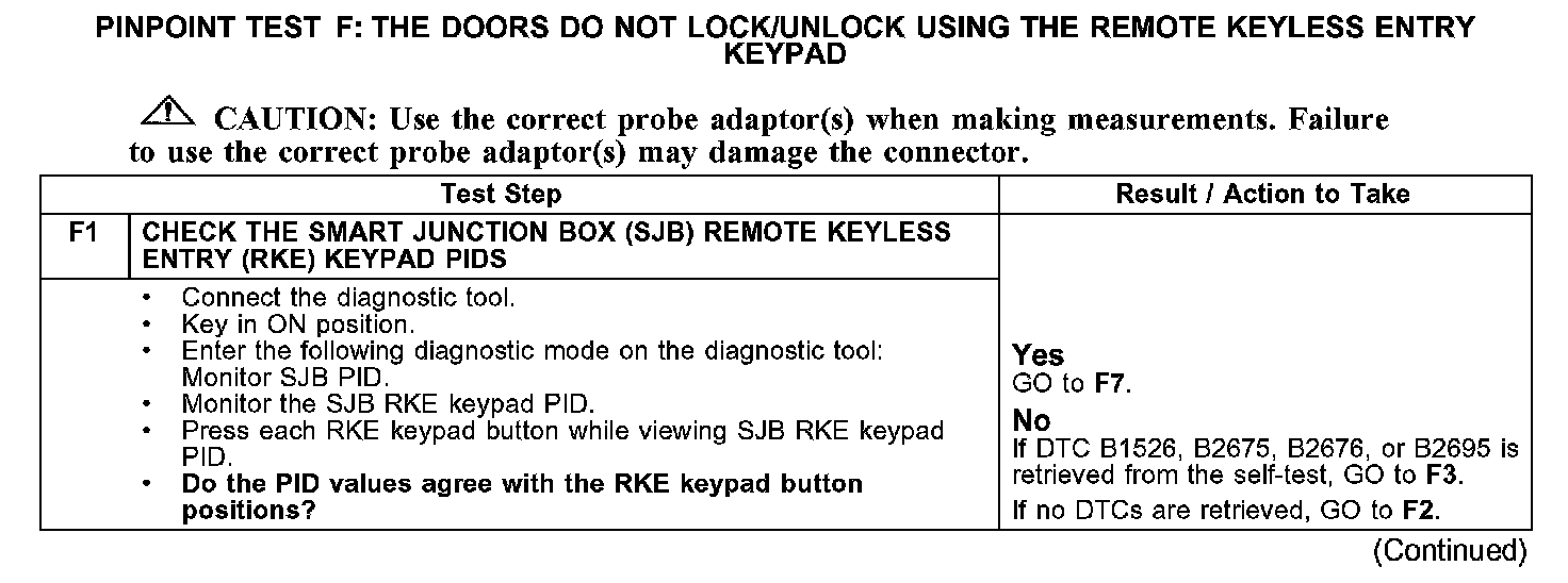 PINPOINT TEST F: THE DOORS DO NOT LOCK/UNLOCK USING THE REMOTE KEYLESS ENTRY (RKE) KEYPADF1:
