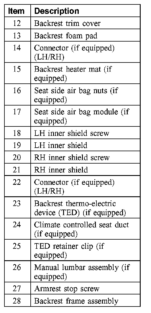 13. WARNING: Front seat backrest trim covers installed on seats equipped with side air bags cannot be repaired, they are to be replaced (cleaning is permissible).