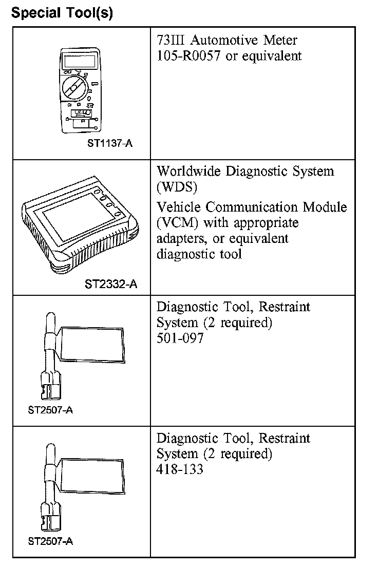 RESTRAINT SYSTEM DIAGNOSTIC TOOL WARNINGSpecial Tool(s):
