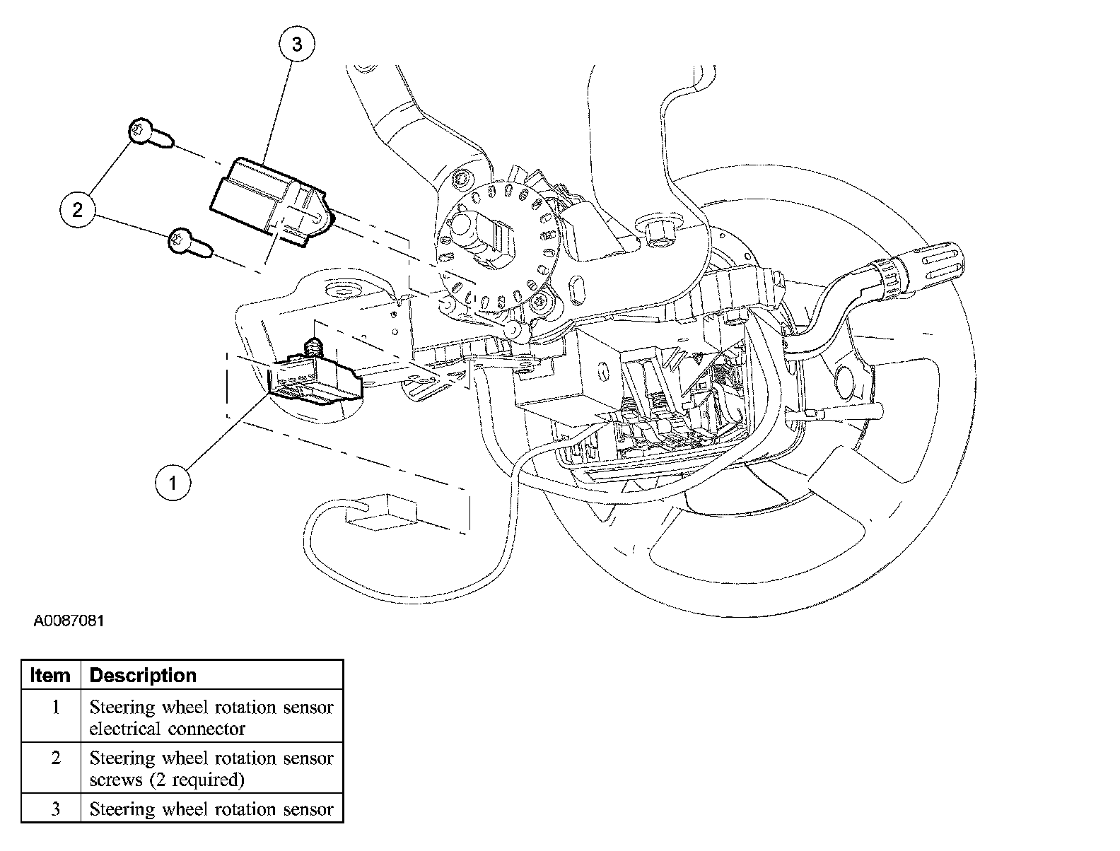Steering Wheel Rotation SensorNOTE: When installing a new steering wheel rotation sensor, the anti-lock brake system (ABS) module must be configured (using vehicle as-built data) and calibrated. Follow the diagnostic tool directions for the calibration procedures. For module configuration, refer to Information Bus.