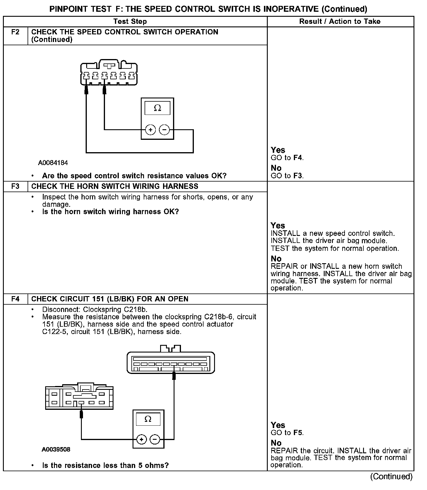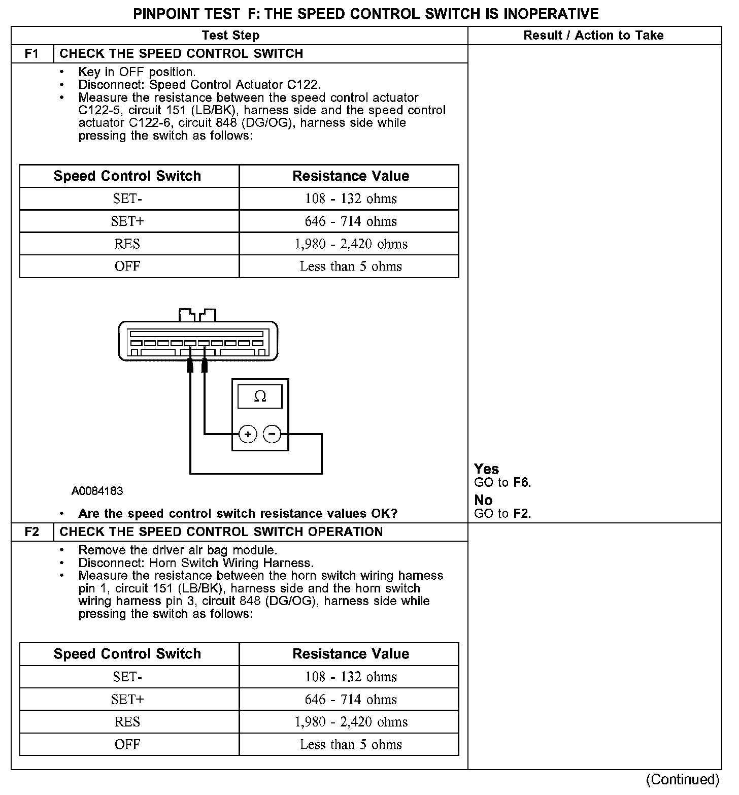 PINPOINT TEST F: THE SPEED CONTROL SWITCH IS INOPERATIVEF1-F2:
