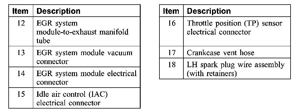 15. Disconnect the upper and lower exhaust gas recirculation (EGR) system module tube fittings and remove the tube.