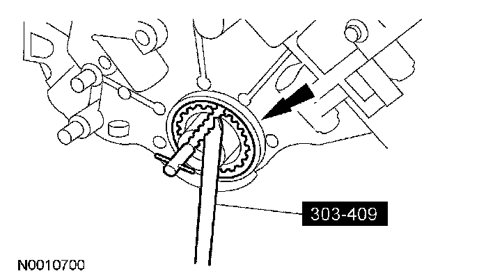 CAUTION: During engine repair procedures, cleanliness is extremely important. Any foreign material, including any material created while cleaning gasket surfaces, that enters the oil passages, coolant passages or the oil pan, can cause engine failure.