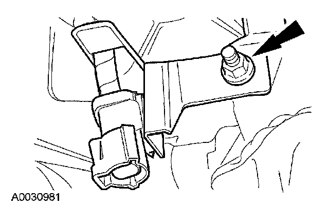 6. Install the catalyst monitor sensor electrical connector bracket and the nut.