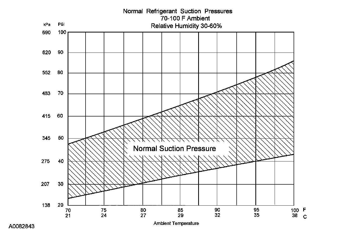 - The system performance can be evaluated and diagnosed by analysis of the compressor suction and discharge pressures. The following procedure is used to determine if the system is operating at normal pressures.