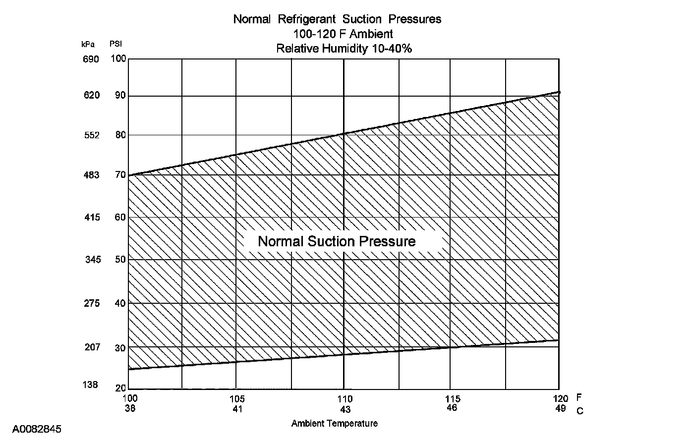 10. Determine if the suction pressure falls between normal operating limits using the Normal Refrigerant Suction Pressures chart.