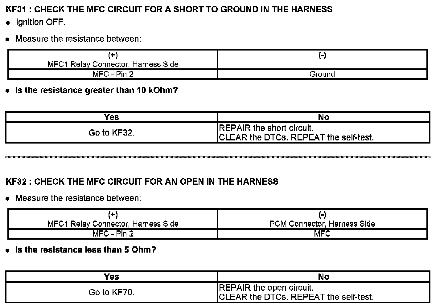 PINPOINT TEST KF: FAN CONTROL (FC) RELAYS