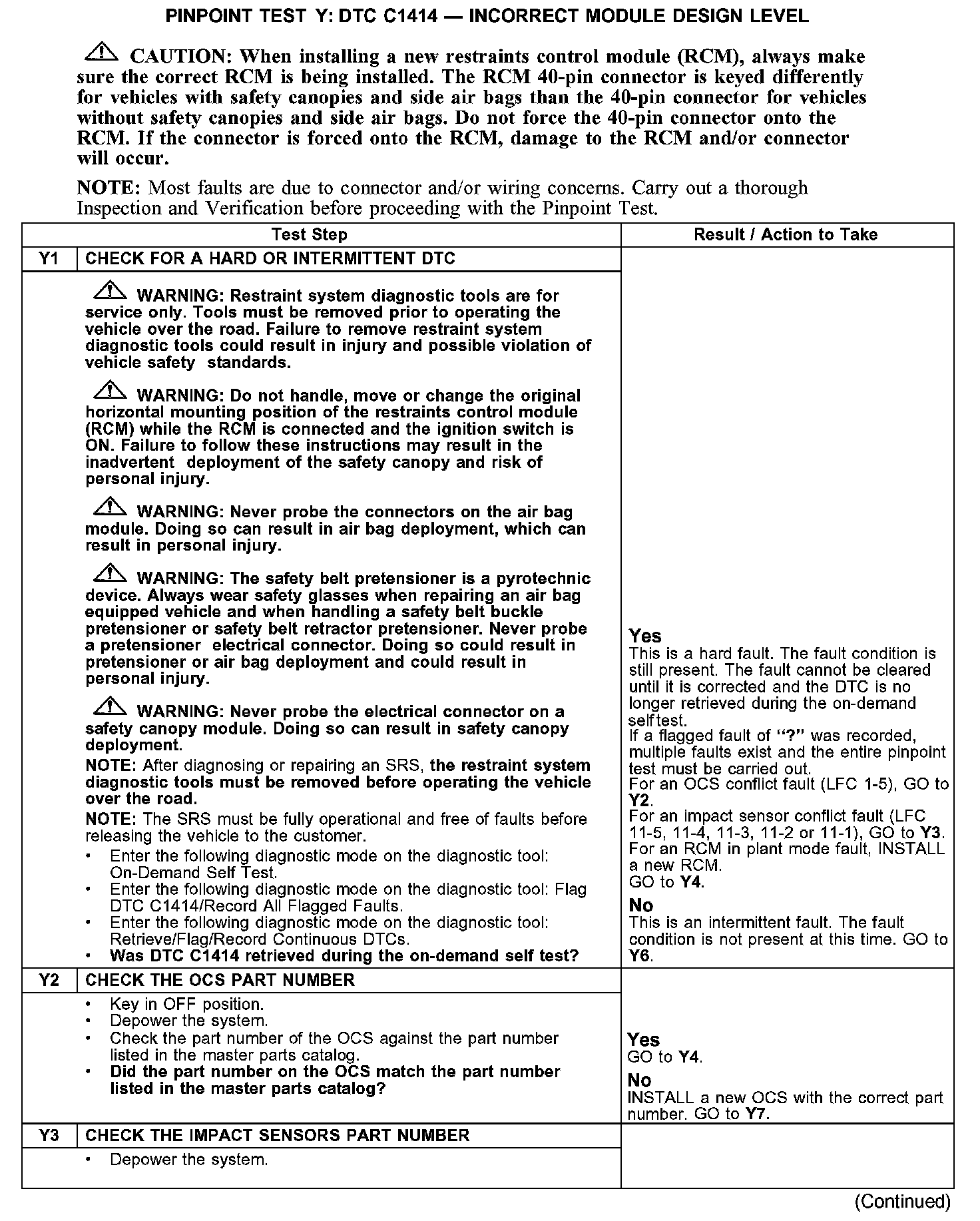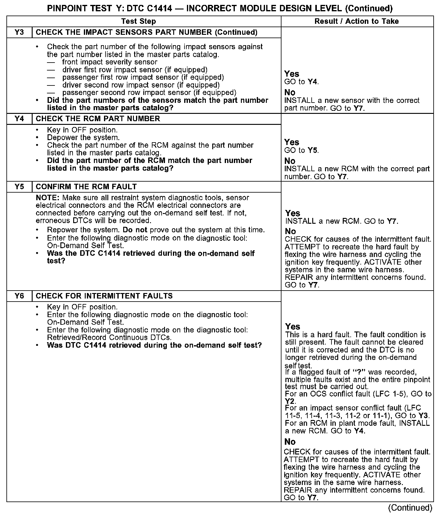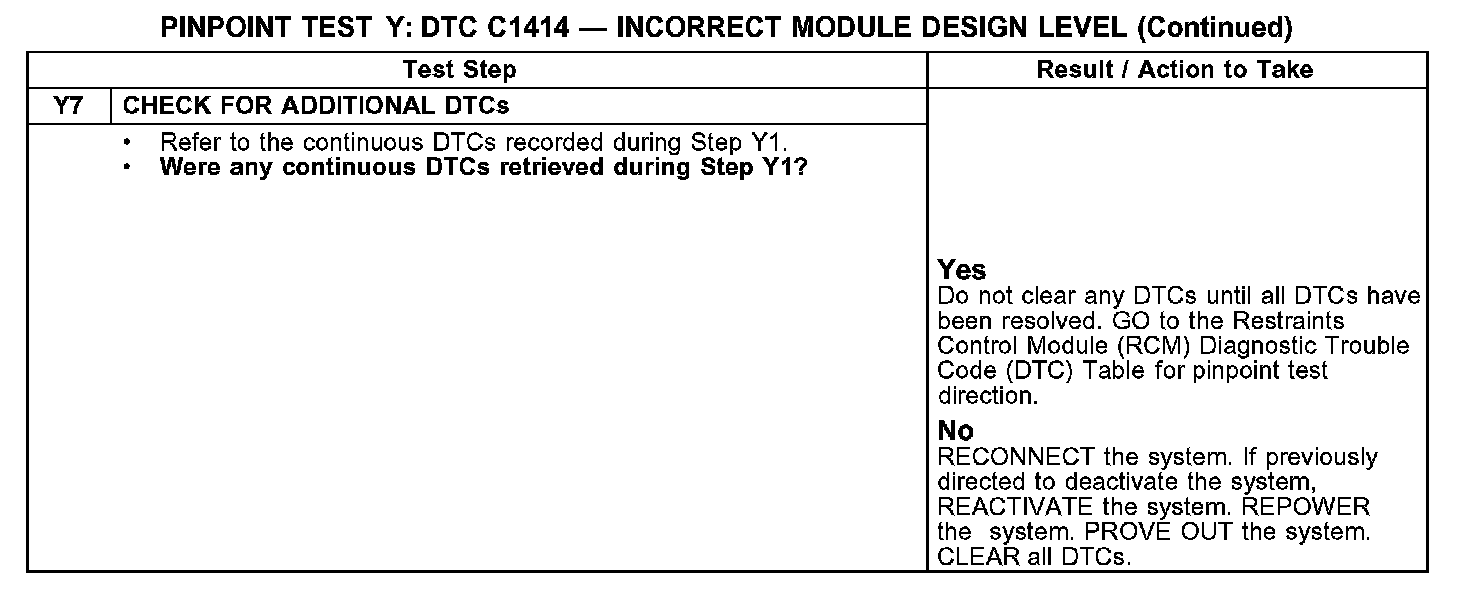 PINPOINT TEST Y: DTC C1414 - INCORRECT MODEL DESIGN LEVELY1-Y3: