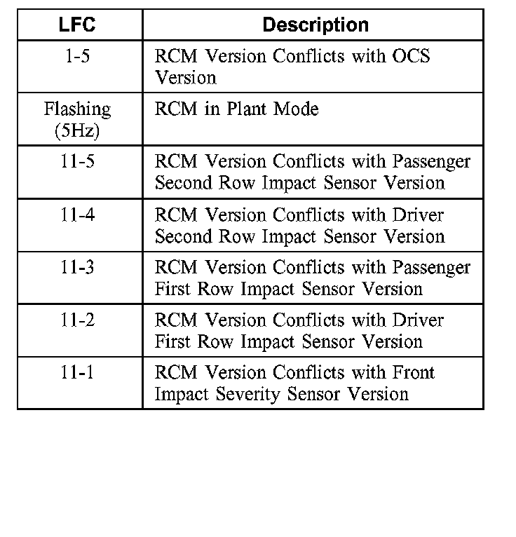 If the RCM receives conflicting information from the impact sensors or OCS system it will store diagnostic trouble code (DTC) C1414 in memory and, depending on the fault, flash a lamp fault code on the air bag indicator.