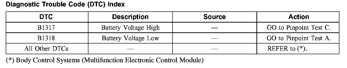 Diagnostic Trouble Code DTC Index