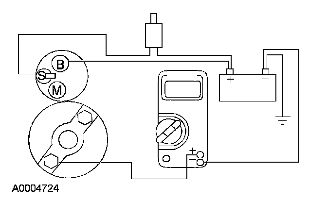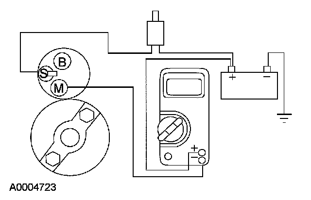8. Remove the cables from solenoid B-, S- and M-terminals. Clean the cables and connections and reinstall the cables to the correct terminals. Repeat Steps 3 through 6. If the voltage drop reading is still greater than 0.8 volt when checked at the M-terminal and less than 0.8 volt when checked at the B-terminal, the concern is in the solenoid contacts. Install a new starter motor.