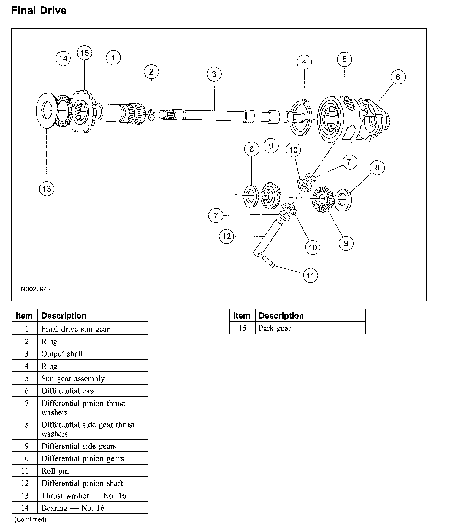 1. Remove the No. 16 final drive gear front thrust bearing.