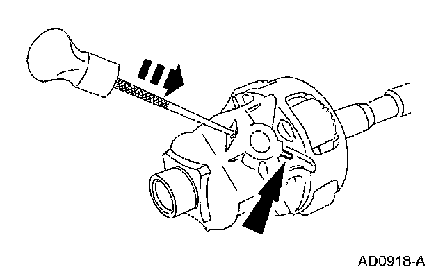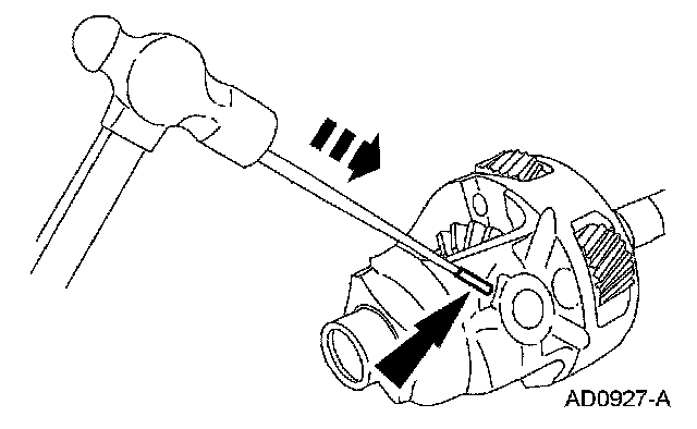 6. Install the differential pinion shaft roll pin.
