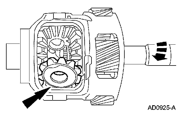 1. Inspect the differential pinion and side gears for looseness, discoloration, cracks or excessive gear wear.