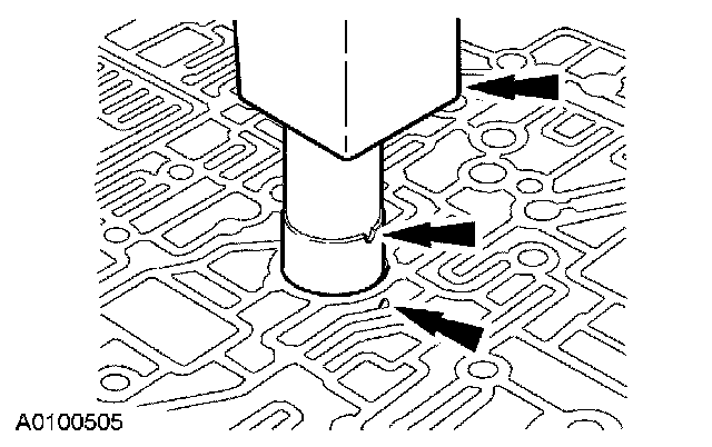 ^ Verify that the hole in the valve body sleeve aligns with the hole in the circuit passage.