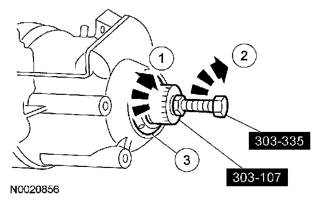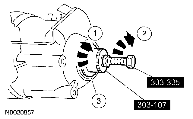 2. Rotate the forcing screw while holding the Front Crankshaft Oil Seal Remover.