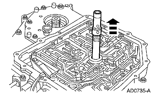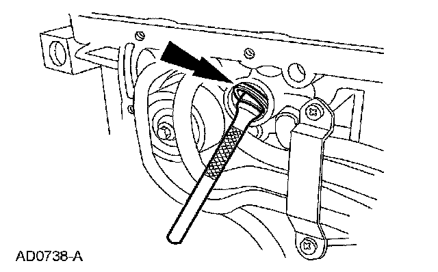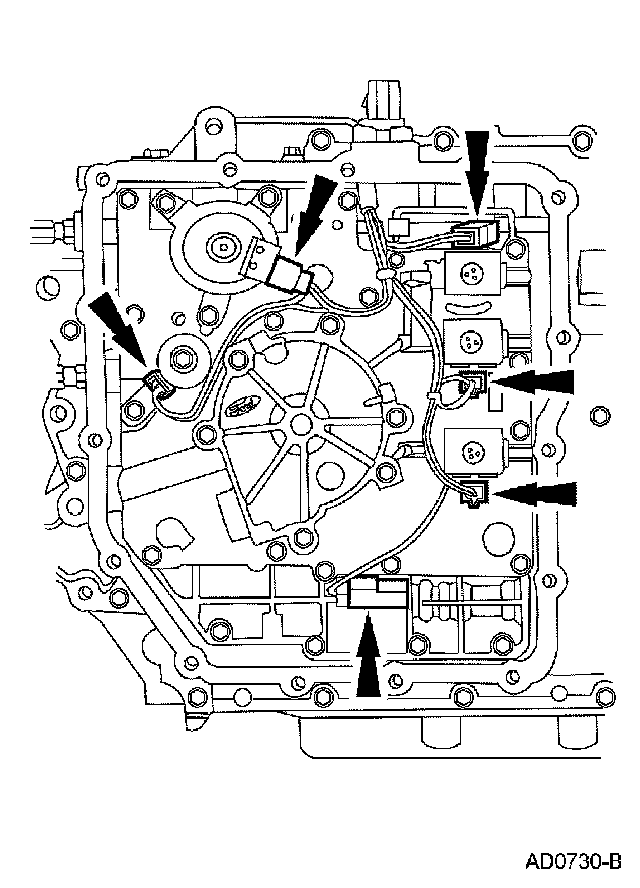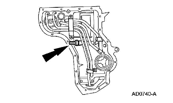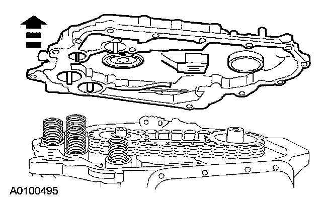 6. CAUTION: The overdrive band servo spring cover is under spring tension. Care must be taken when removing as components can be ejected from the case.