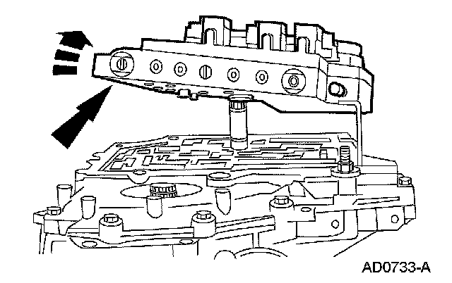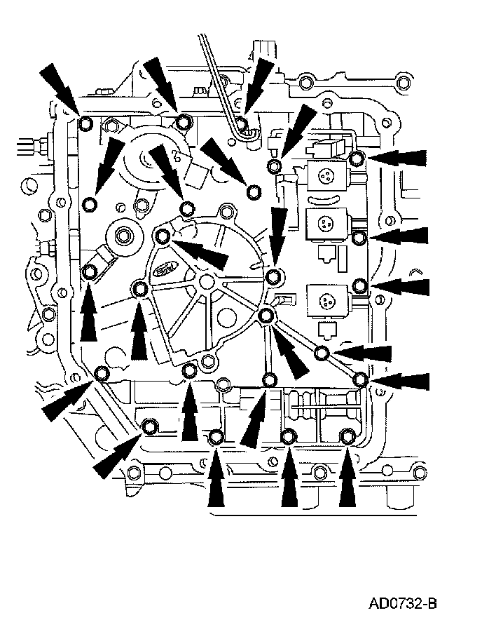 24. CAUTION: Do not remove the 2 bolts that hold the pump assembly and main control valve body together as the pump assembly may fall from the main control valve body.