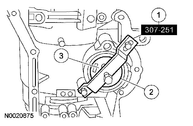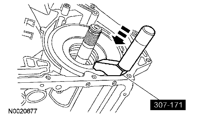 Position the special tool into the case and install the hook end of tool into one of the lube holes in the front sun shell. Position the block over the edge of the assembly and tighten the handle.