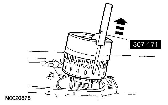54. Using the special tools, remove the reverse clutch and planet assembly.