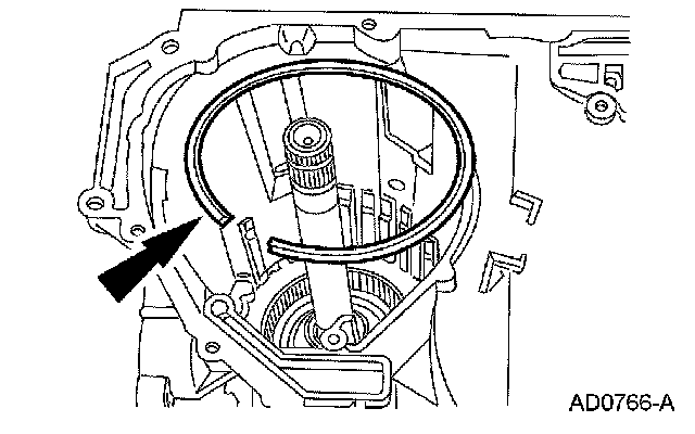 CAUTION: Use care not to damage final drive support assembly, transaxle case or retaining ring during removal.