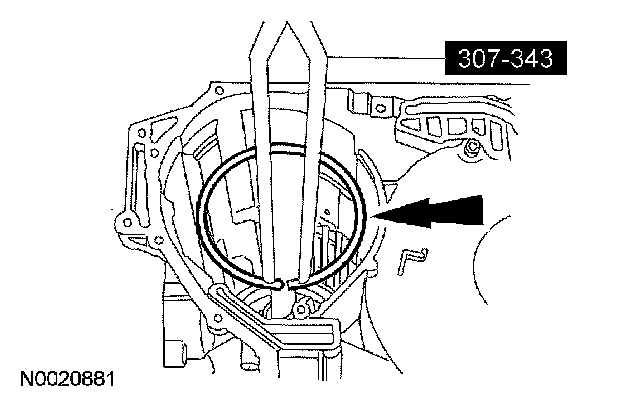 Using the special tool, remove the beveled retaining ring and record the shape of the ring end.