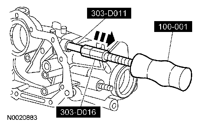 52. NOTE: Do not overtighten the handle of the tool. Place two 3/8-inch washers between the handle and the notched block.