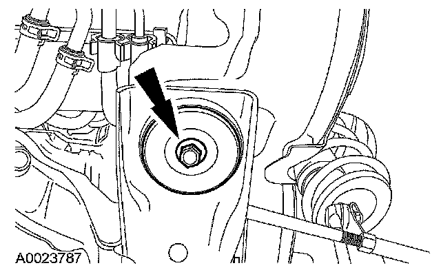 30. Install the right front subframe bolt.