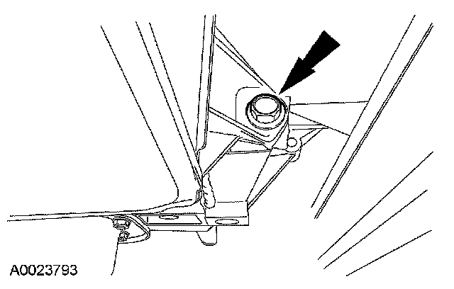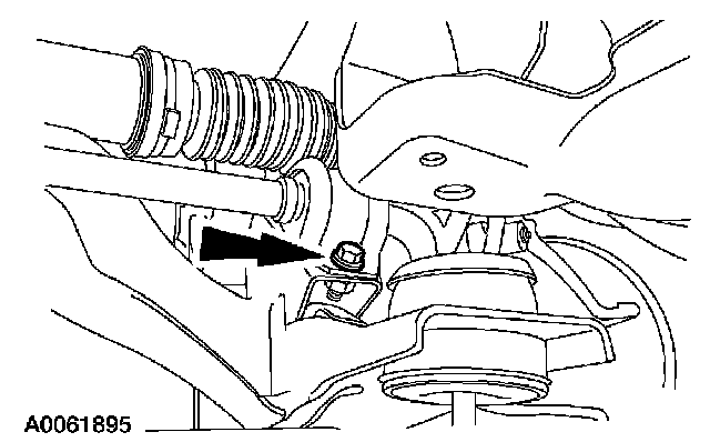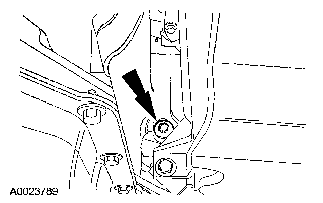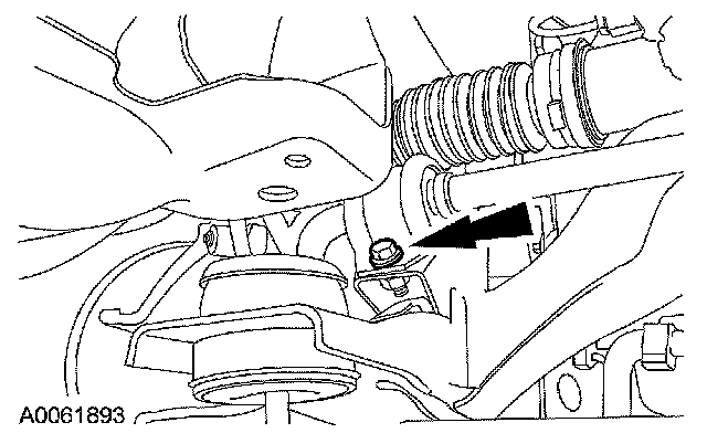 Remove the right rear subframe bolt and partially lower the subframe assembly.
