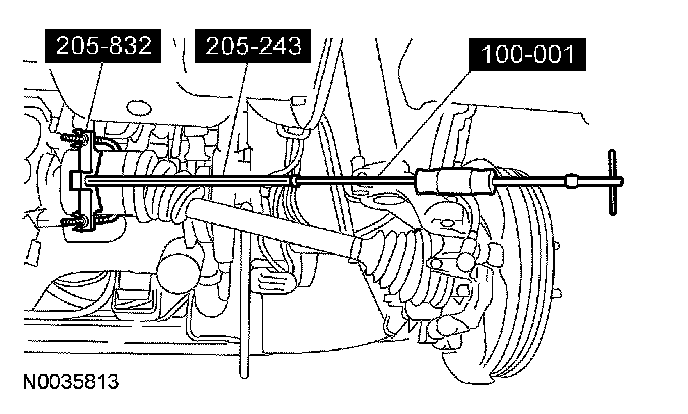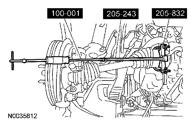 Using the special tools, remove the LH halfshaft from the transaxle and position aside.