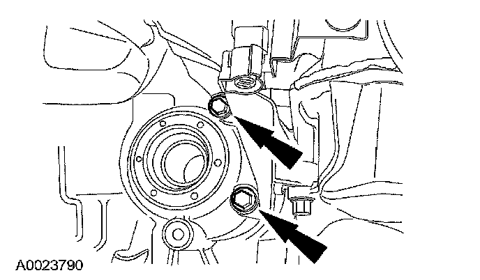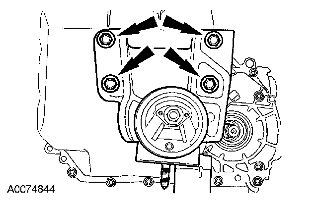 64. Remove the transaxle retaining bolts.