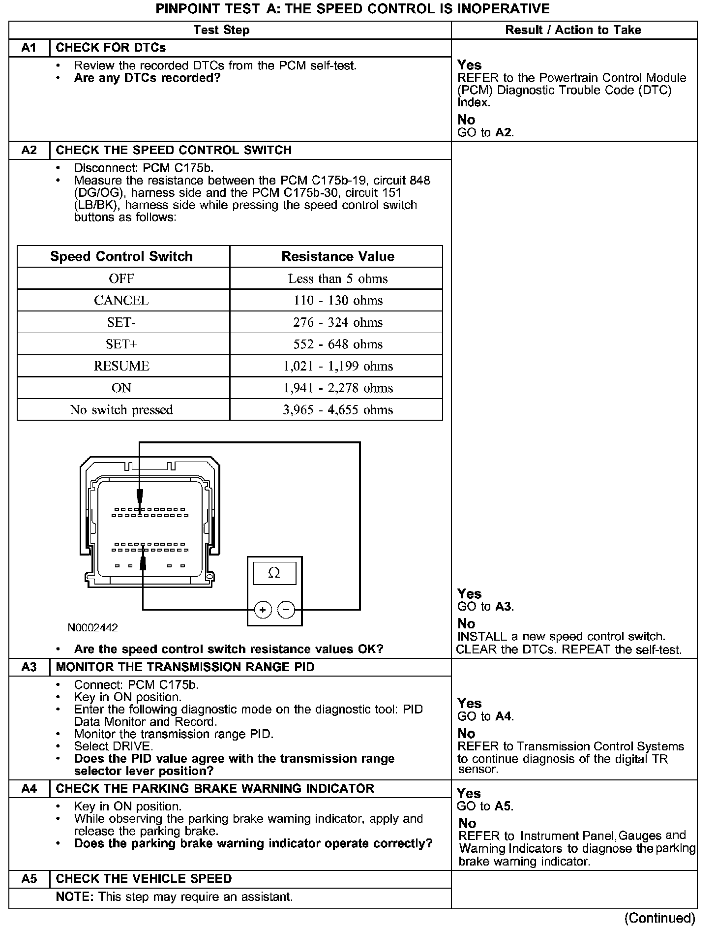 PINPOINT TEST A: THE SPEED CONTROL IS INOPERATIVEA1-A5: